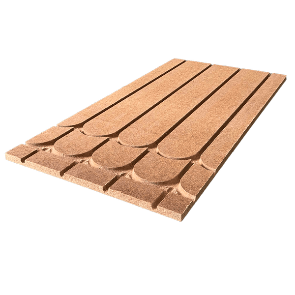 Trittschalloptimierte Trägerplatte für Heizrohre aus Holzfaser